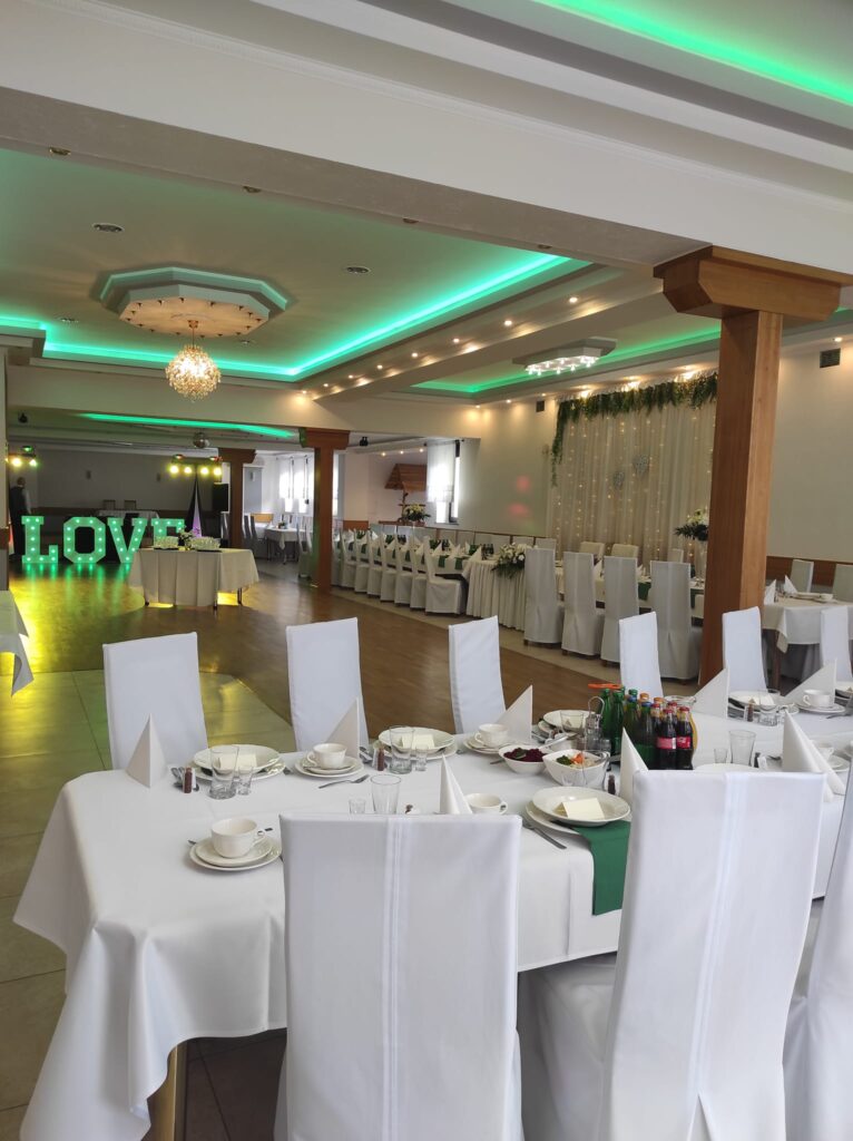 Masz do dyspozycji dużą salę weselną do 150 gości oraz mniejszą salę bankietową do 50 osób.